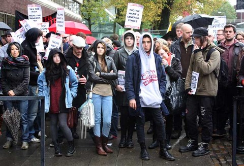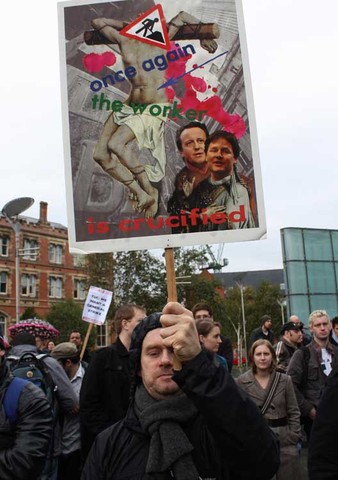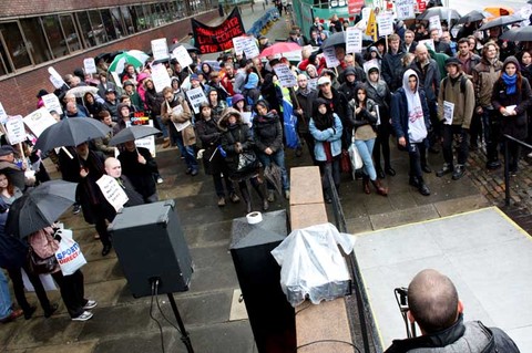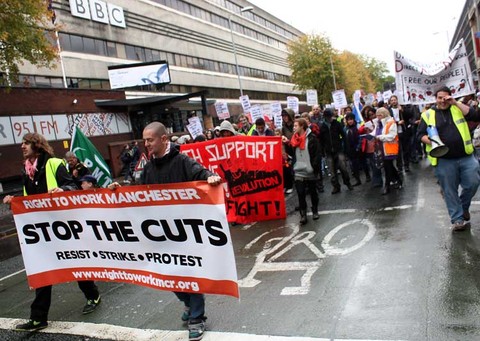 Manchester Demonstrators Rage at Government Cuts.