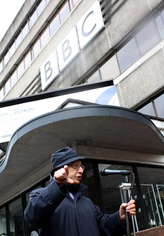 Despite the rain the large crowd rallied outside the BBC offices in Oxford Road before marching through the city centre to a mass meeting at the Cathedral Gardens.