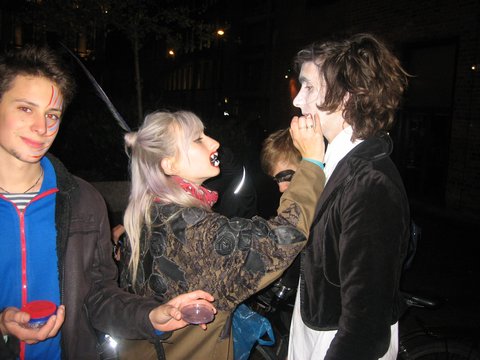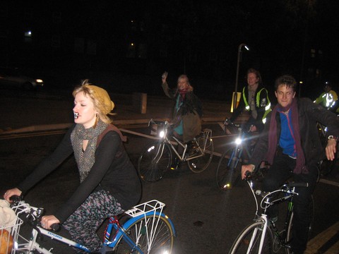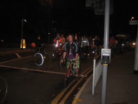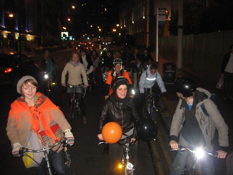 The critical mass in Leeds celebrated Halloween on Friday. The monthly celebration of cycling round had a good number of cyclists who braved the mass of cars to make a mass of bicycles. The atmosphere was friendly with a few drivers asking, "What are you protesting about?", to which the mass replied that we were just riding our bikes.