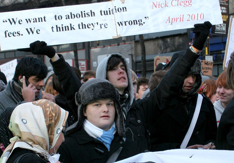 The Demonstrators were opposing rising tuition fees, which could triple to £9,000 under government proposals, which many students say they cannot afford.