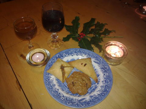With a vegan mulled wine, mulled buckfast and spiced hot juices we were all well quenched, and ready to devour the substantial pile of mince pies, spiced apple parcels and cinnamon-raisin-oatmeal cookies.