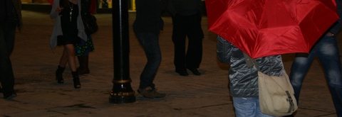 The group, carrying red umbrellas to mark their support for the campaign, handed out leaflets and chatted to late night shoppers, early revellers and passers by in the area around Ivegate, Bradford.