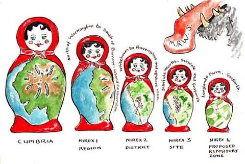 This 1990's search for a site culminated in an Inquiry which ruled overwhelmingly against the geological disposal of intermediate level wastes in Cumbria's leaky geology. Now high level nuclear wastes are being proposed for a mega underground dump (or two) that in size (10km square 1000ft deep) rivals the huge old coal mines on the West Coast.