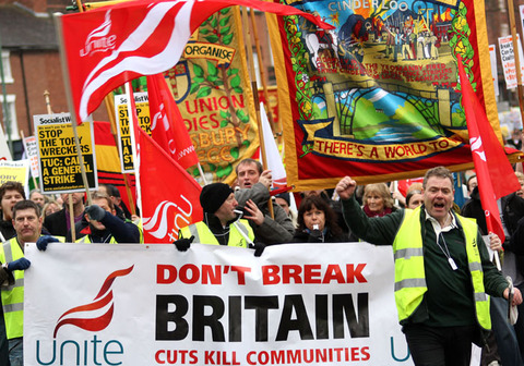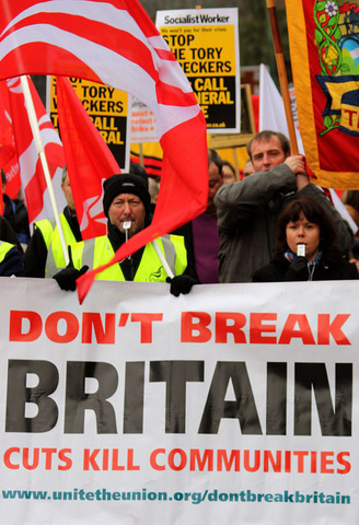He said he was encouraging people to go to a mass demonstration against the government funding cuts on 26 March.