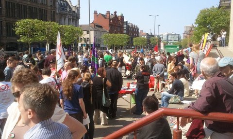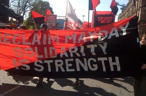 There has been another successful series of events surrounding May day, the traditional workers' holiday. The day has also been used by anti-capitalist protesters to come together and try to stop the violent form of capitalism in which we live [1]. In the North of England it was more relaxed this year, with marches in Newcastle [2], Leeds [3] on Saturday and Manchester [4] on Sunday and a festival in Bradford [4] on the Sunday.