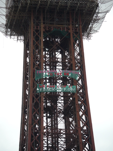 Blackpool Tower is five miles east of the first fracking test well in the UK. The group is highlighting the issue and launch of an anti-fracking direct action campaign centred around the website http://www.frack-off.org