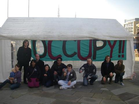 Early this afternoon a couple of dozen activists began to set up an occupation in Bradford in front of the town hall.