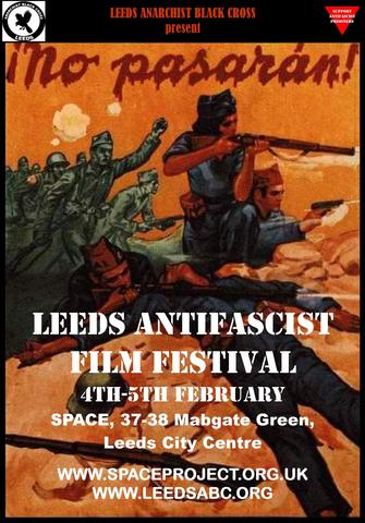 Leeds Antifascist Film Festival will take place at Space, an exciting new project at Mabgate in central Leeds, over the weekend of the 4th and 5th of February. We are showing films documenting the struggle against fascism in Spain, Germany, France, and England. The programme also includes some short talks, a quiz, and there will even be some anti-Nazi comedy. The Leeds ABC bookstall will be there selling books, pamphlets, T-shirts, badges, CDs, and more. There’ll be sandwiches and vegan cake, a raffle, and the weekend concludes with a session of antifascist songs from Javaad Alipoor.
