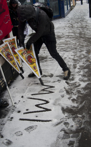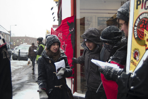 Twenty Pizza Hut workers and their supporters in Sheffield braved freezing temperatures and billowing snow today to stage a protest against what they say are "insulting" conditions and pay.