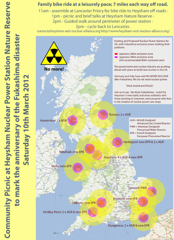 Sat 10th March, 11am antinuclear bike ride to Heysham, followed by picnic at 3pm at the power station