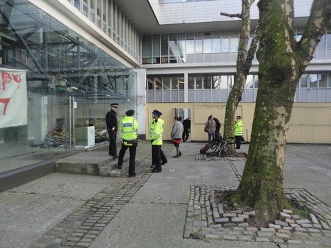 Police and Bruntwood security are blocking access to the newly squatted Kro2 Bar on Oxford Road, central Manchester - next the former BBC building. An emergency support demo has been called for TODAY (Monday 19th March 2012) at 1.30pm outside Kro2 Bar (M1 7ED) in support of community spaces and to say no to police protecting corporate interests.