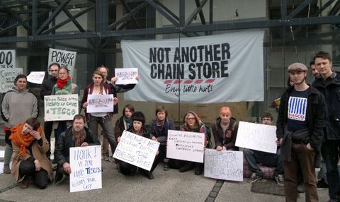 Ashley added, “This isn't just about Tesco, bad as they are. It's about the dominance of big businesses at a local, national and international level. What we've seen today is a classic collaboration of the police and corporate interests. The cops have arrested people on spurious evidence in order to re-secure the property for developers Bruntwood, so that they can continue with plans to make yet another chainstore. We wanted to open this space up for ordinary people to ask the question, 'Who runs Manchester? And in whose in interests?' "