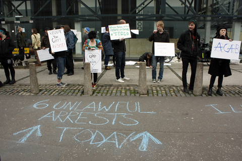 Ashley continued, “The police are claiming that damage to a nearby fence and door warranted the arrests. However, their forced entry and arrests were unlawful, since the police have no evidence that any of the six people who happened to be in the space at the time were responsible. It was just an excuse to get them out.”