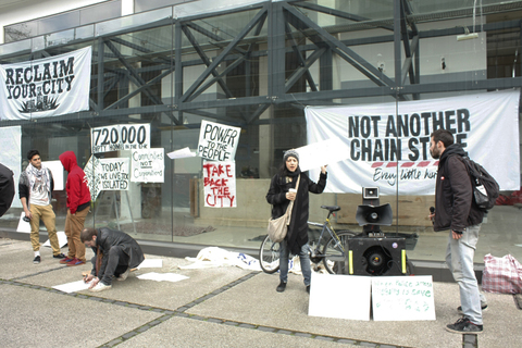One of the occupants, Georgia Ashley, involved in the protest but not in the building at the time of the arrests said, “Plans by Bruntwood property developers to build a Tesco here is another example of the increasing corporate takeover of our city. As more and more identical chainstores are built, rents are going up and ordinary Mancunians are getting priced out.”