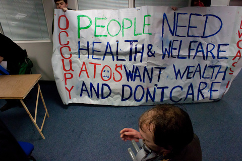 Occupy Newcastle Activists target ATOS' discrimination against the vulnerable and disabled.
