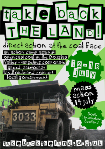 In two weeks we’ll be setting up for 6 days of resistance to corporate rule in the Douglas Valley. We’ll be taking on the UK’s largest opencast coal mining company, landlord-aristocrat-banker Lord Home and South Lanarkshire Council – together they conspire to make a few people very wealthy, whilst communities are left disempowered, disenfranchised and to suffer all the impacts that living next to opencast mines bring. The Douglas Valley is a sacrifice zone for the ruling class – but don’t despair! Scottish Coal are in big financial trouble and there’s been no better time to hit them where it hurts. In fact, its time to Take Back the Land!