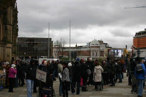 At 12pm on Saturday 13th February, 2010, between 100-150 Animal Rights activists gathered at Centenary Square in the centre of Bradford to protest against the use of animals for experimentation at the University of Bradford.