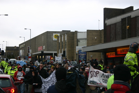 A march through the streets and up to the University building witnessed several arrests and what many regarded to be heavy handed policing tactics, as protestors were prevented from handing out leaflets to the public on several occasions and two were arrested for attempting to obscure the view of the FIT (Forward Intelligence Team) cameraman who was trying to film people attending the legal demonstration. Several small skirmishes ensued causing a high level of tension between the Police and demonstrators.