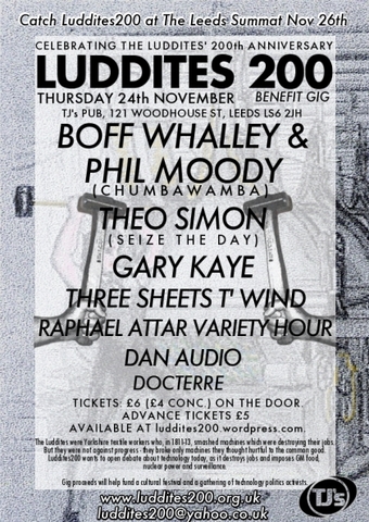 Book online in advance for £5 at http://luddites200blog.org.uk/leeds-event-ticketing or email luddites200@yahoo.co.uk