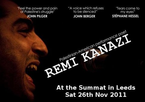 Palestinian-American performance poet, writer and resistance activist Remi Kanazi will be preforming at the Leeds Summat 2011