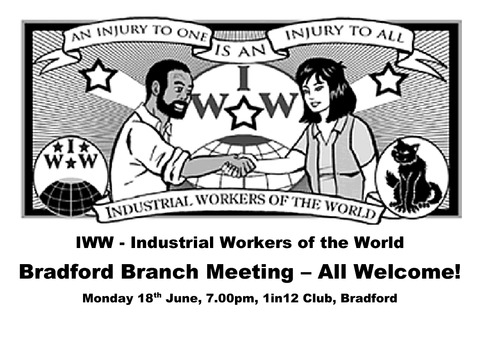 First meeting for the Bradford branch of the Industrial Workers of the World (IWW).
