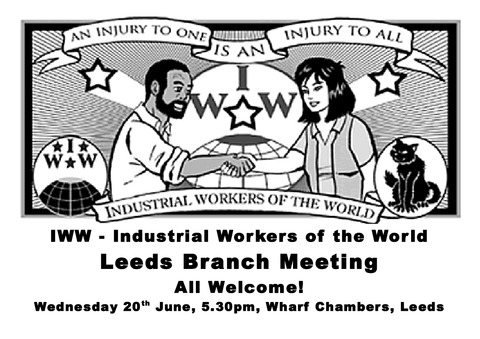Poster for IWW Leeds Branch Meeting - 20th June