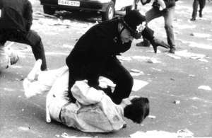 20 years on from the moment when Thatcherism crashed and burned in Trafalgar Square, and crazed coppers charged pedestrians with horses and motor vehicles we gather in the tranquility of the 1in12 Library and watch a few films, drink a few drinks, and wonder where the years went.