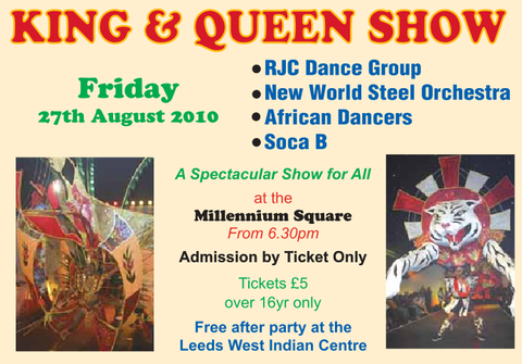 A spectacular show feat. RJC Dance Group, New World Steel Orchestra, African Dancers and Soca B. Admission by ticket only, £5.
